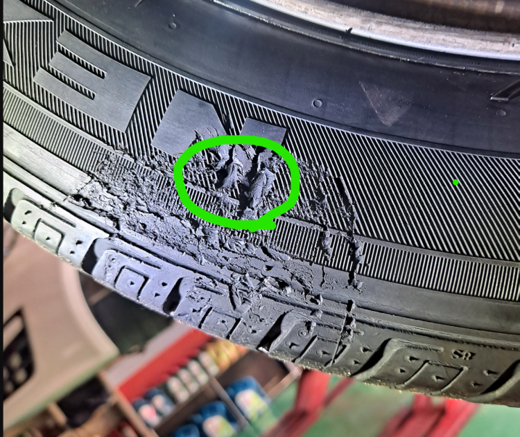 측면은 타이어 구조상 약한 부분인데 상당히 깊게 파인 것으로 보입니다.